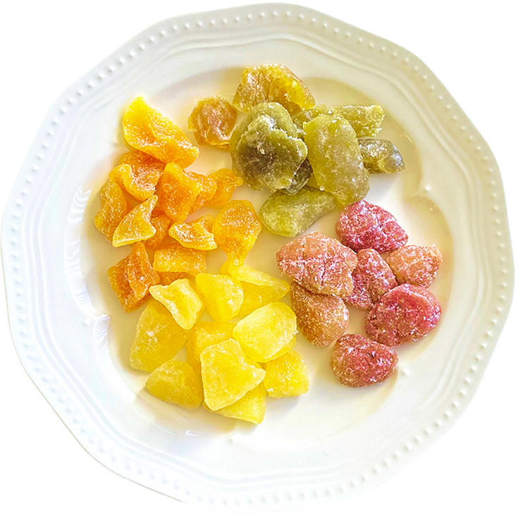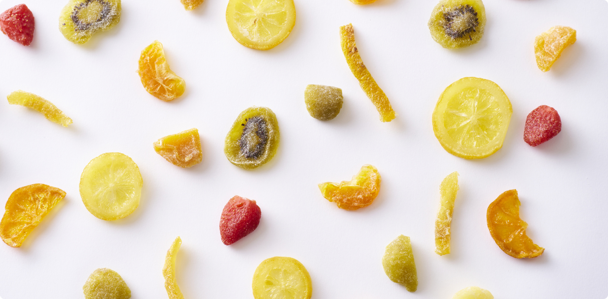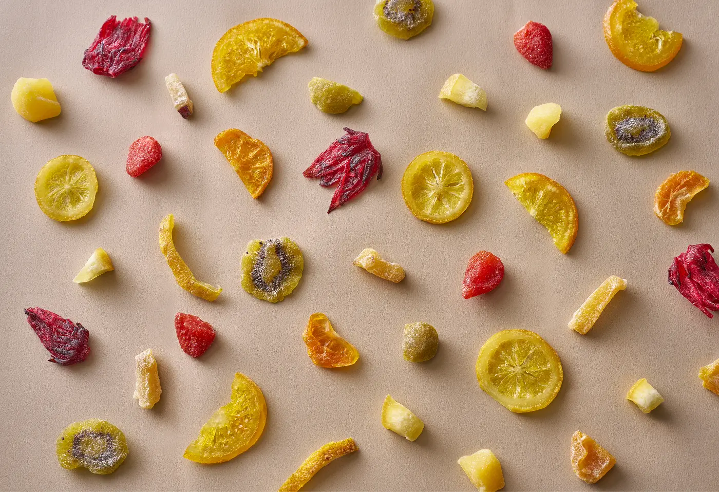伝統の半生製法と真空濃縮という新たな技術を組み合わせて生まれた半生ドライフルーツは、高温で加熱することなく加工しているため果物本来のフレッシュな「味」「色」「食感」を体現できます。