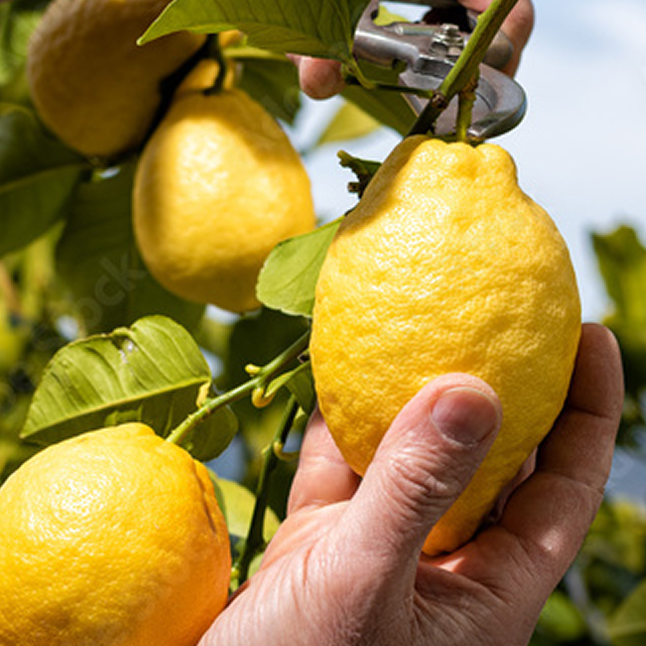 南信州菓子工房では、味は美味しくても少しキズがあったり形が規格外で、市場に出せないまたは一般的に廃棄されることが多い果物を、ドライフルーツの材料として使用しています。 2019年には生産者不足で遊休化していた大分県の農地を利用し、地域特産のレモンの栽培をスタートしました。日々様々な果物の産地に足を運ぶ中で、この先温暖化の影響による集中豪雨や寒波などによる仕入れ数激減の可能性や、農家の方々の高齢化がさらに進むことも予想し、主力商品については契約栽培または自社栽培にシフトするのが賢明だと考えたからです。2021年春にレモンの苗木の定植を開始し、約五年後からは年間300tの収穫を見込んでいます。